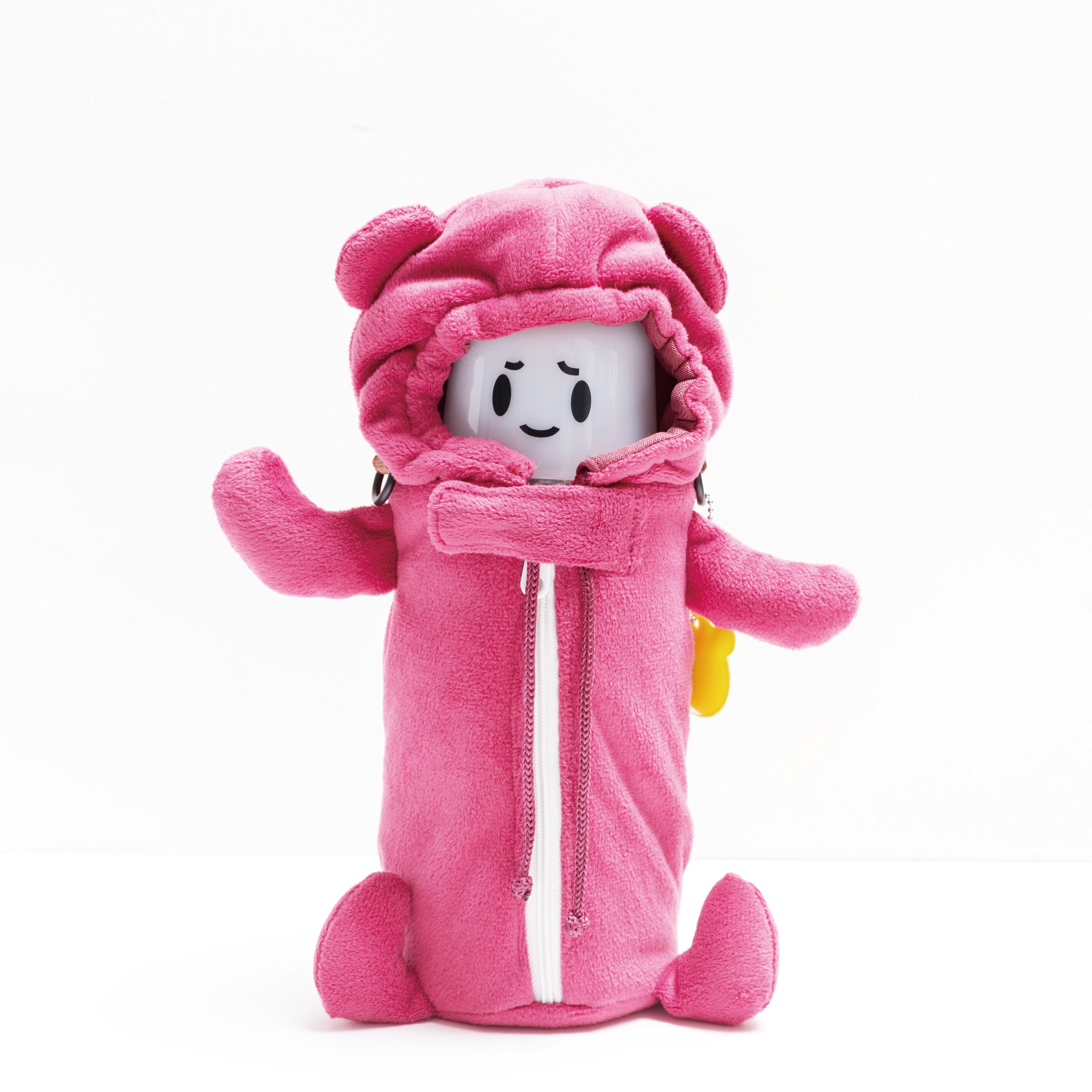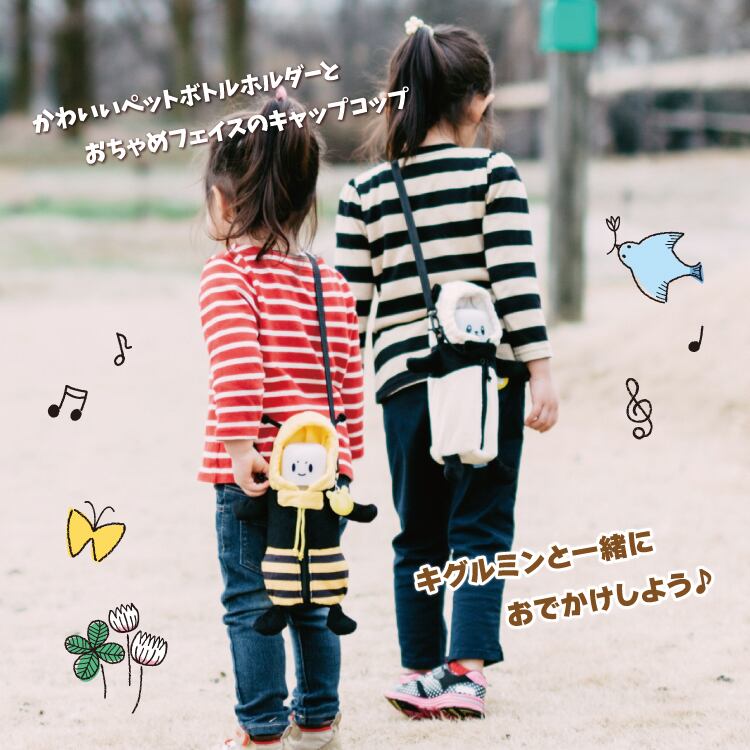 キグルミンはママさんたちの声から作ったかわいくて実用的なペットボトルホルダーです。ペットボトルに顔のイラスト入りキャップコップを装着し、キグルミンカバーをかぶせて出来上がり♪